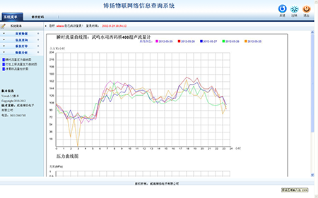該系統(tǒng)使用簡單、方便、直觀;使用戶只要擁有上網(wǎng)電腦,可隨時隨地的總觀全局,掌握現(xiàn)場動態(tài)信息,可查看網(wǎng)內(nèi)任意監(jiān)測點的各種流量、壓力等數(shù)據(jù),為決策者分析提供有力的依據(jù),及時進(jìn)行科學(xué)調(diào)度,得到理想管理效果。